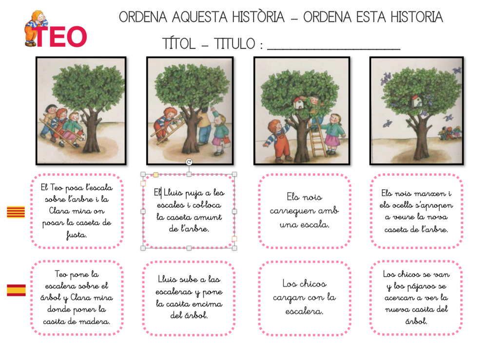 Secuencias temporales en formato imagen y texto para ordenar según cada historia.